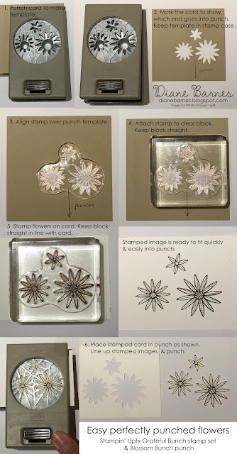 I thought it'd be fun to make try making clusters of flowers to fit the sketch using our new Grateful Bunch bundle, as it includes 4 different flower sizes... & a matching punch (yippee). What do you think - did I pull it off the sketch?